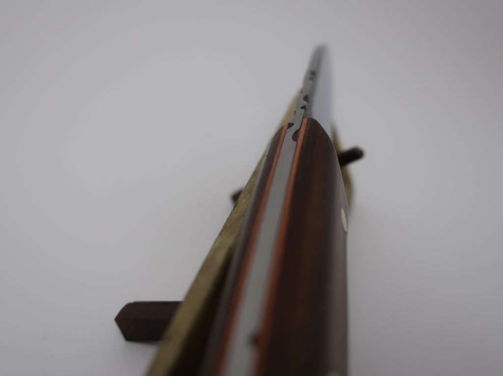 - Matériau : Le manche en palissandre, un bois précieux et très dense, est synonyme de robustesse et de beauté. Sa texture chaleureuse et naturelle ajoute une touche d’élégance au Fenrir.