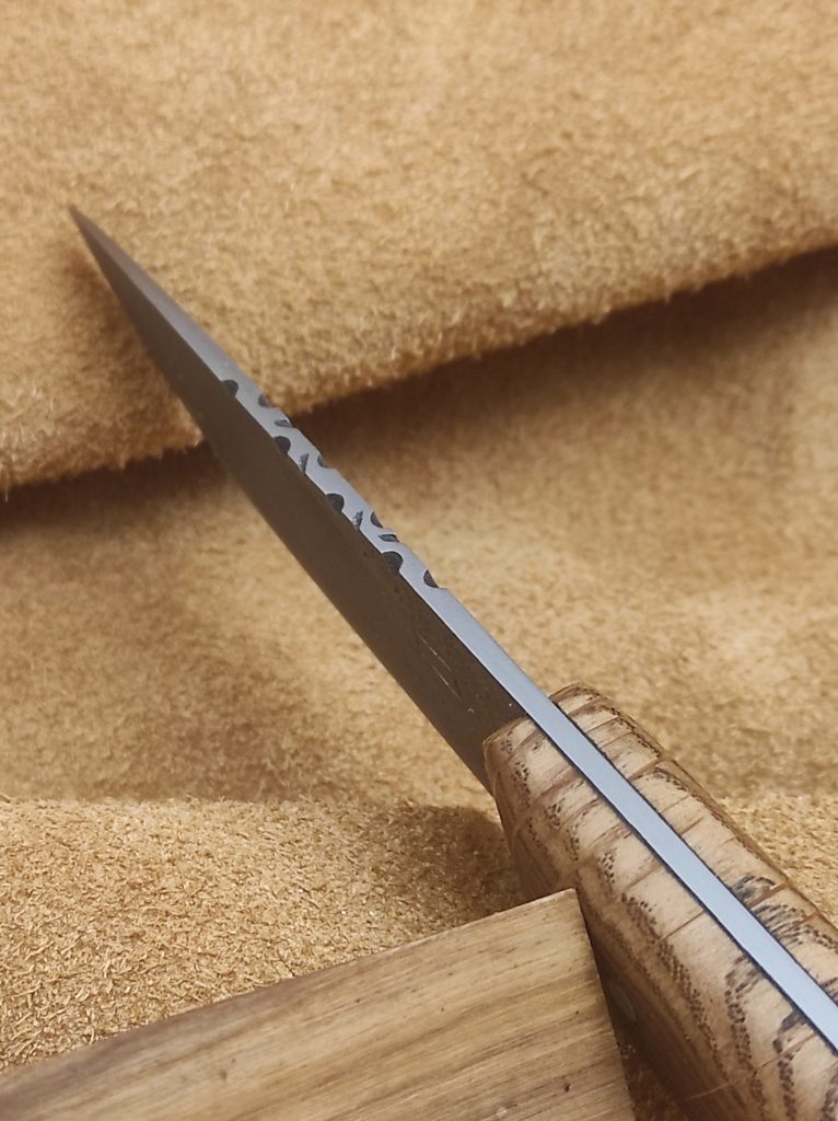 - Trempe Sélective : Le Fenrir bénéficie d’une trempe sélective, une technique qui permet d’obtenir des zones de dureté variées sur la lame. Cela optimise à la fois la résistance à l’usure et la souplesse, offrant ainsi un tranchant durable tout en préservant la capacité d’absorption des chocs.